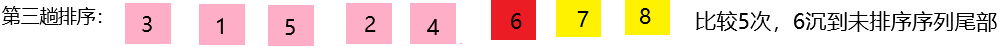 第三次排序:5和5比较,5小于6,不交换位置 [3,1,5,6,2,4,7,8]