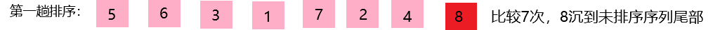 第七次排序:8和4比较,8大于4,交换位置 [5,3,1,6,7,2,4,8]