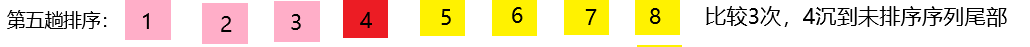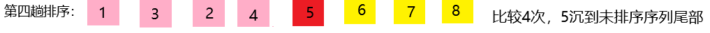第四次排序:5和4比较,5大于4,交换位置 [1,3,2,4,5,6,7,8]