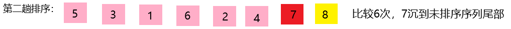 第五次排序:8和7比较,8大于7,交换位置 [5,3,1,6,7,8,2,4]
