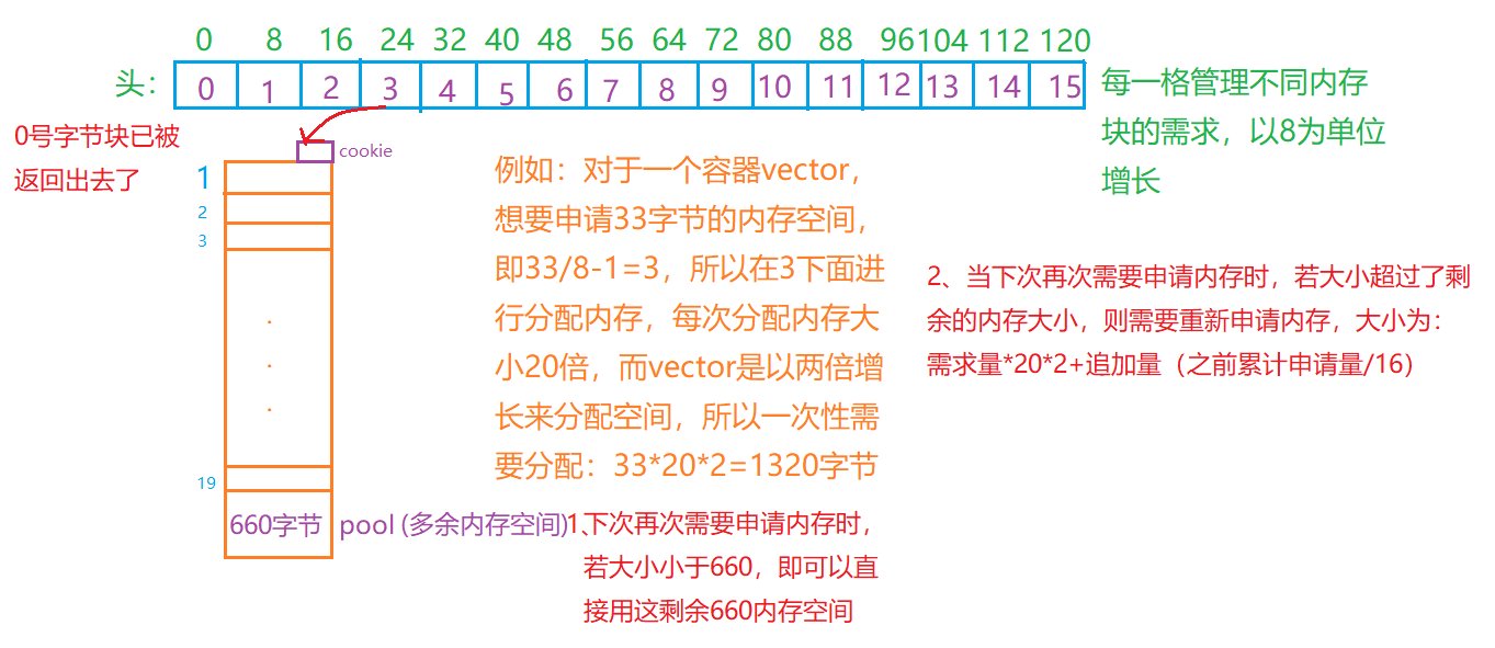性能最好的一个内存管理示意图如下:(G2.9下非标准的一个分配器原理_gnu_cxx::pool_alloc)