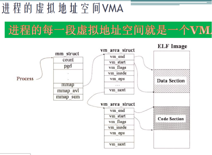 VMA 表面地址的合法性,和权限,不代表页表里面真实的权限,但是linux的页表中发生page fault时会检测vma,确定是否合法访问,如果合法,申请对应的物理地址映射过来。