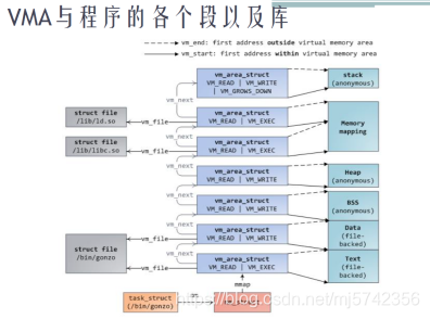这些vma 可能来自程序本身的代码段,数据段,或者动态库。