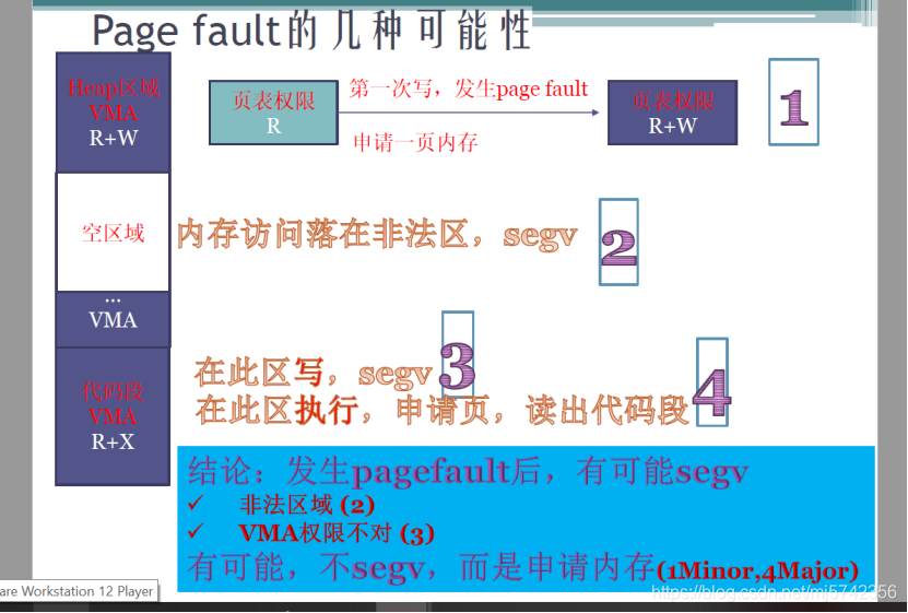 Linux 下各种page fault,通常分为minor page fault ,和major page fault。第一中只是申请一页内存,第二种不仅要申请内存,还需要读取硬盘,所以这种开销是远大于minor page fault的,从硬件MMU 不区分这个,minor和major 是纯软件的概念。