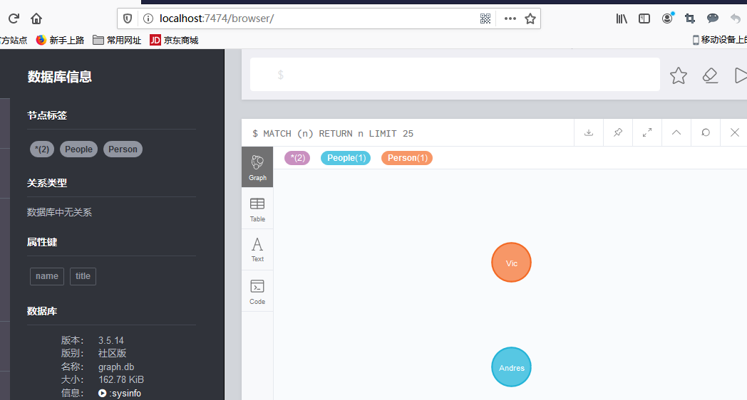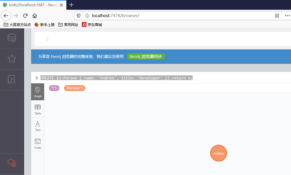 (3)创建一个节点后,在Graph模式下可以看到创建的图形。继续编写Cypher脚本,创建其他节点;