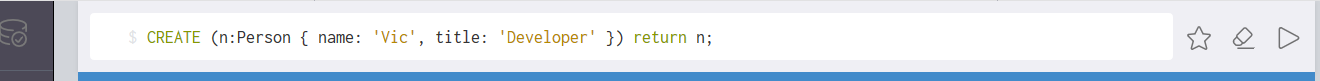 CREATE (n:Person { name: 'Vic', title: 'Developer' }) return n;