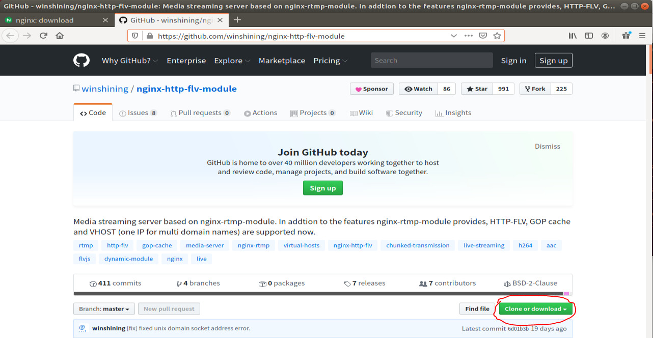2、下载http-flv插件https://github.com/winshining/nginx-http-flv-module