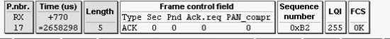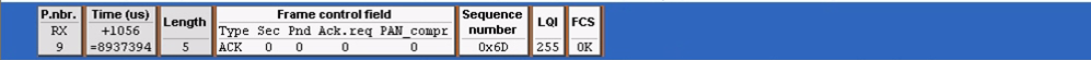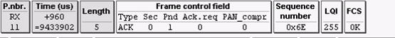 第九帧:是协调器模块回复给路由器模块的ACK,表明我已经收到了你发过来的帧。