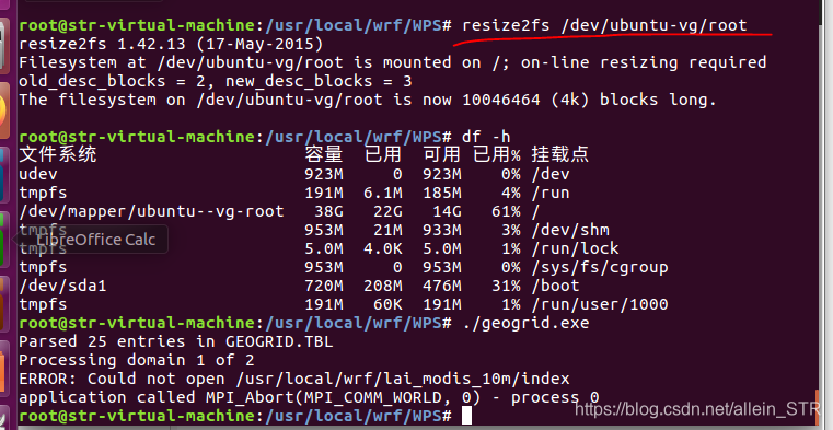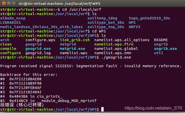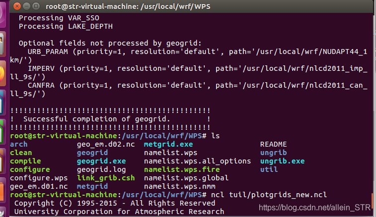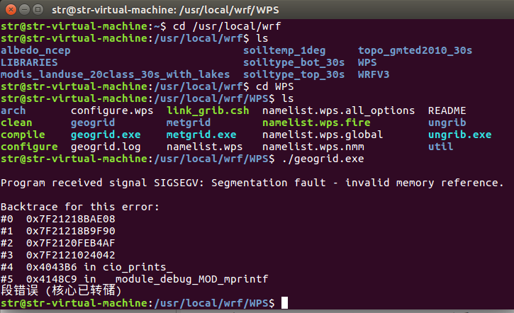 打开终端(命令是ctrl+alt+T),在WPS根目录下输入geogrid.exe,看是否成功。如何才算成功呢?上面链接讲的很清楚。人家会直接提示“successful”字样。