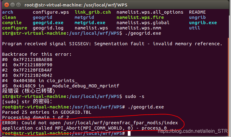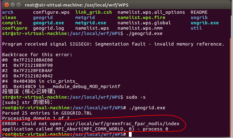 (1)需要在root下输入./geogrid.exe命令。 进入root的命令:sudo -s