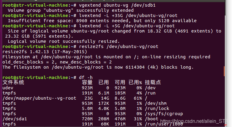 https://www.cnblogs.com/forturn/p/7743240.html 如何为ubuntu等Linux系统扩容(LVM)
