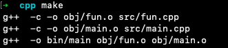 我的workspace为cpp,两个源文件main和fun。main去调用fun文件里面的outname函数。