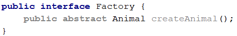 ②定义一个工厂接口,并定义一个生产动物的抽象方法