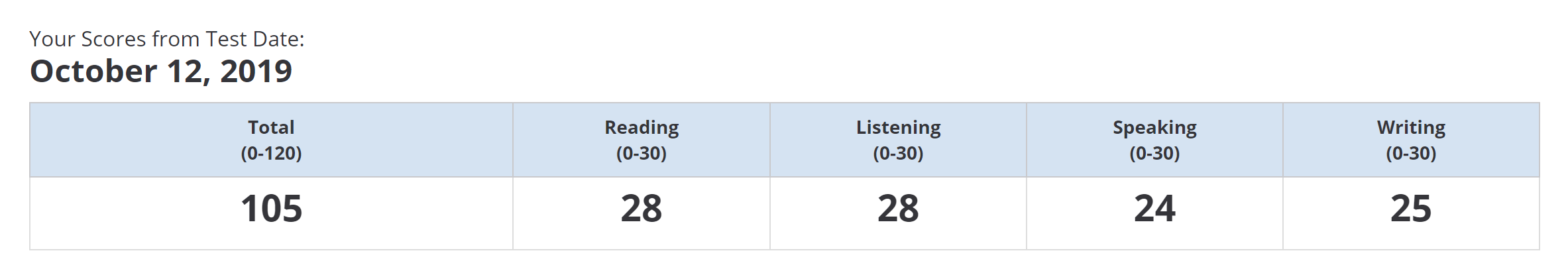 我一共考过两次托福,在2018年的12月第一次考,2019年的10月是第二次考。第一次考的托福是89(25/27/17/20),大学四级成绩是566,六级558。在第一次考托福的一年前报过线下班,学的东西很基础,入门级别的。第二次是在国外呆了将近三个月后考的,考前在别人的一对一指导下主要突击了听力还有写作。