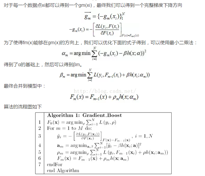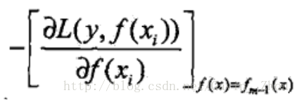 写成梯度下降的方式就是下面的形式,也就是我们将要得到的模型fm(x)的参数{am,bm}能够使得fm的方向是之前得到的模型Fm-1(x)的损失函数下降最快的方向: