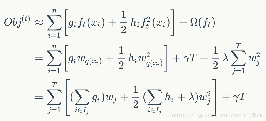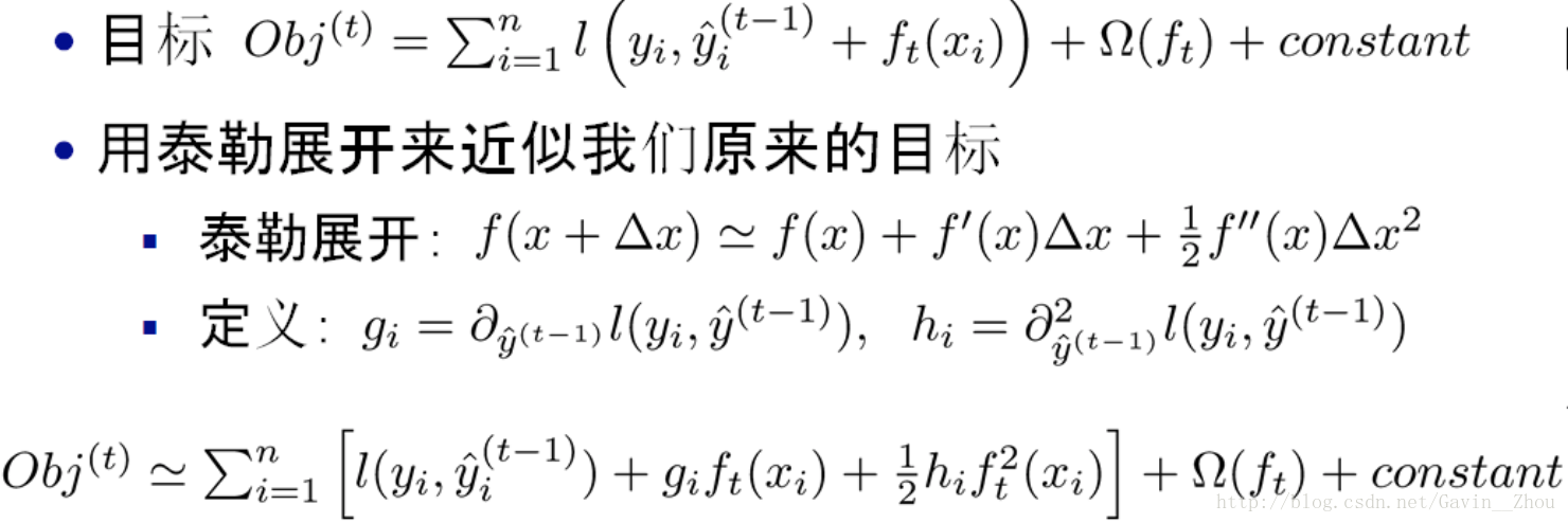 Obj表示object function,跟我们上面说的不一样的是,这里加上了正则,不过不影响理解. 采用泰勒展开来近似: