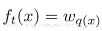 一个树的定义可以分成两个部分: 结构部分和叶子权重部分. 假设q是结构映射函数把输入映射到叶子的索引号上面去,w表示叶子节点的权重. 则树可以表示为: