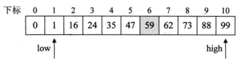 a为待查找的数组,例如:a={0,1,16,24,35,47,59,62,73,88,99}