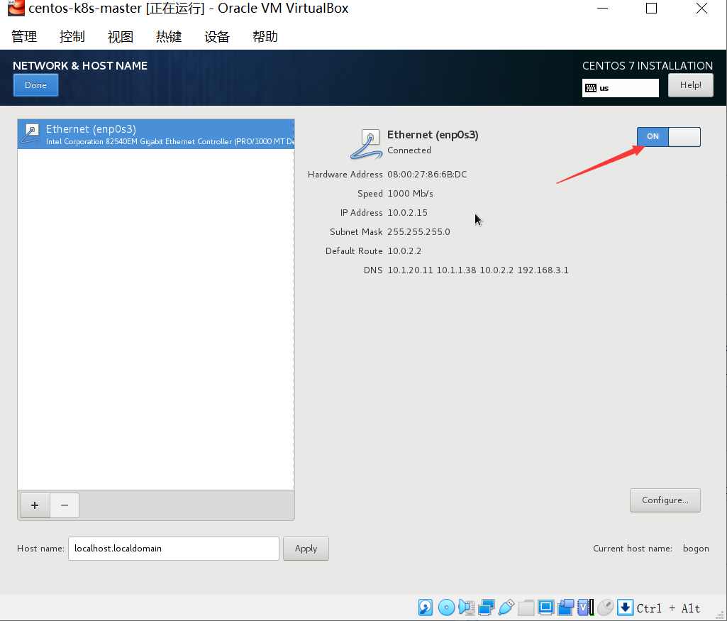 ,【NETWORK&HOSTNAME】中要打开网络(否则enp0s3网卡不可用,winscp远程连接会失败),