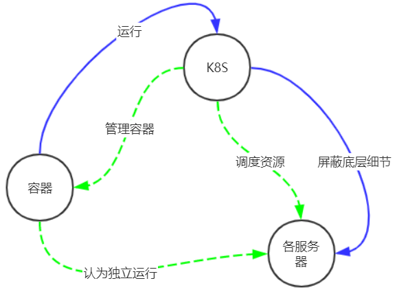 K8S负责对容器进行管理,负责对资源进行调度,也就是让容器应用认为独享了资源,所以也可以叫做 容器编排 。