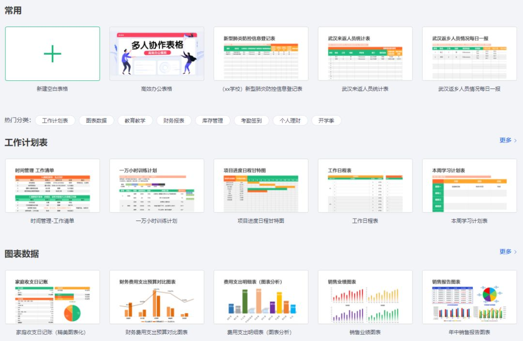 另外为了方便大家在家远程办公,金山文档现开放 365人同时协作编辑的在线文档/表格/幻灯片,还特地加急上线了近600套协作模板。