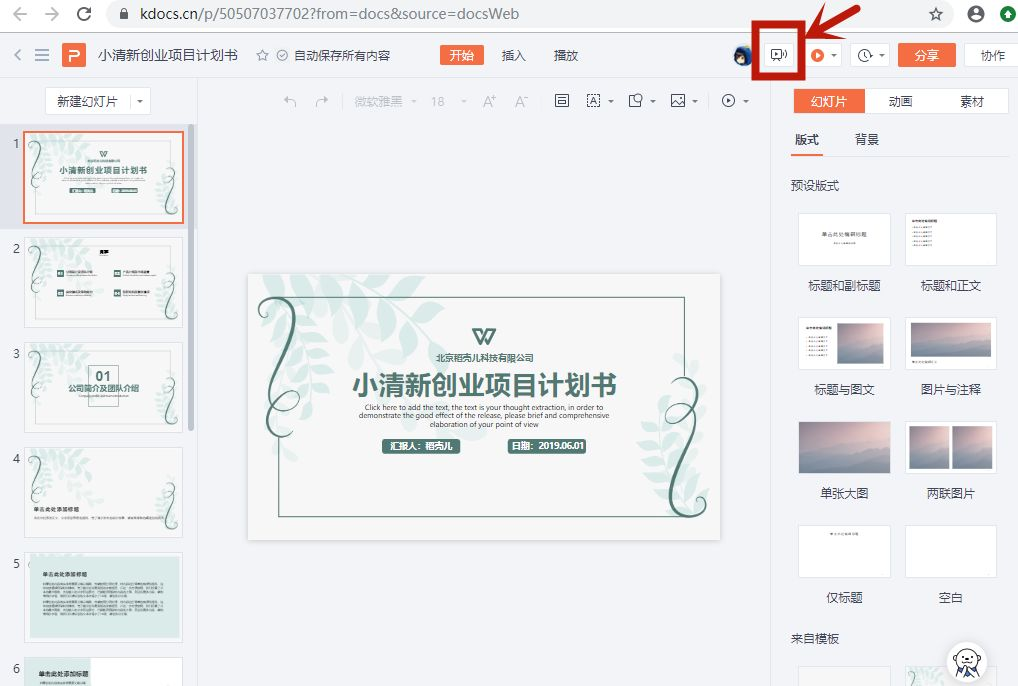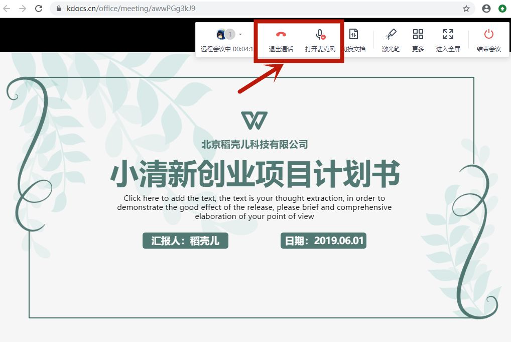 会议功能请在金山文档内使用(PPT,PDF,文字,表格等文档都可以异地同步演示)