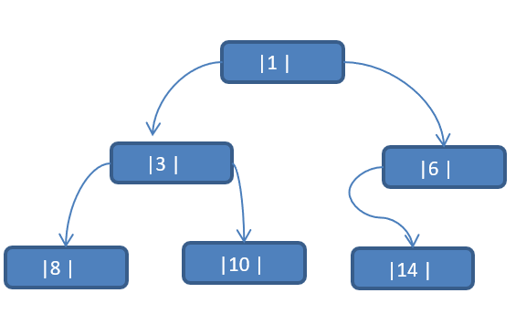 数列 {1, 3, 6, 8, 10, 14 } 构建成一颗二叉树