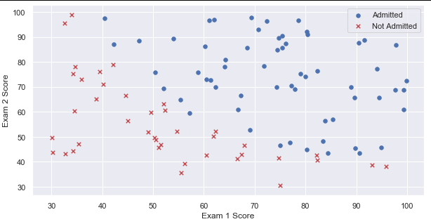 pdData = pd.read_csv(path, header=None, names=['Exam 1', 'Exam 2', 'Admitted'])