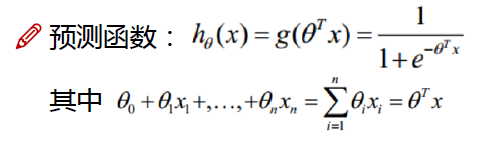 model函数,对应到如下的预测函数,g(z)为sigmoid函数