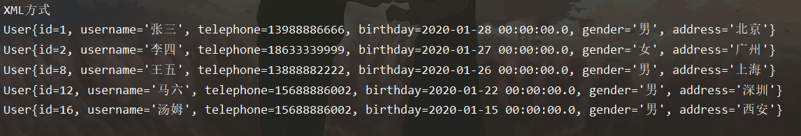 由于今天我们是要使用自定义 MyBatis 框架 进行一个简单的查询,即查询表中的所有用户信息,所以我们需要根据数据库内容,对应的创建出其 User 类实体