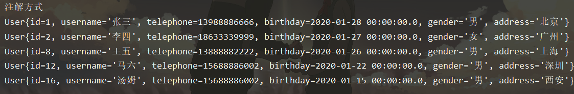 然后到我们的 UserMapper 接口方法上添加注解,将SQL语句写在其中