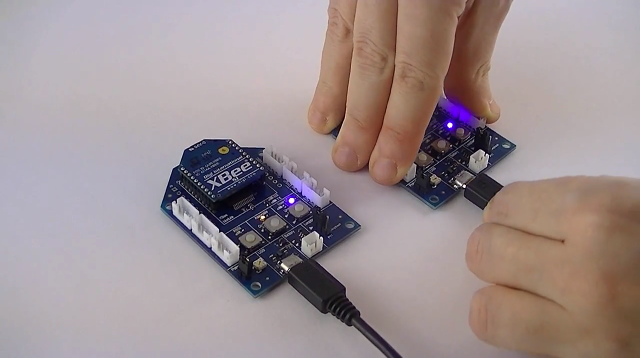 XBee模块是小型射频(RF)设备,可使用无线电信号通过空中传输和接收数据。每当您要将传感器放置在无法安装电缆的地方或不需要进行系留的地方时,无线功能都是必不可少的。