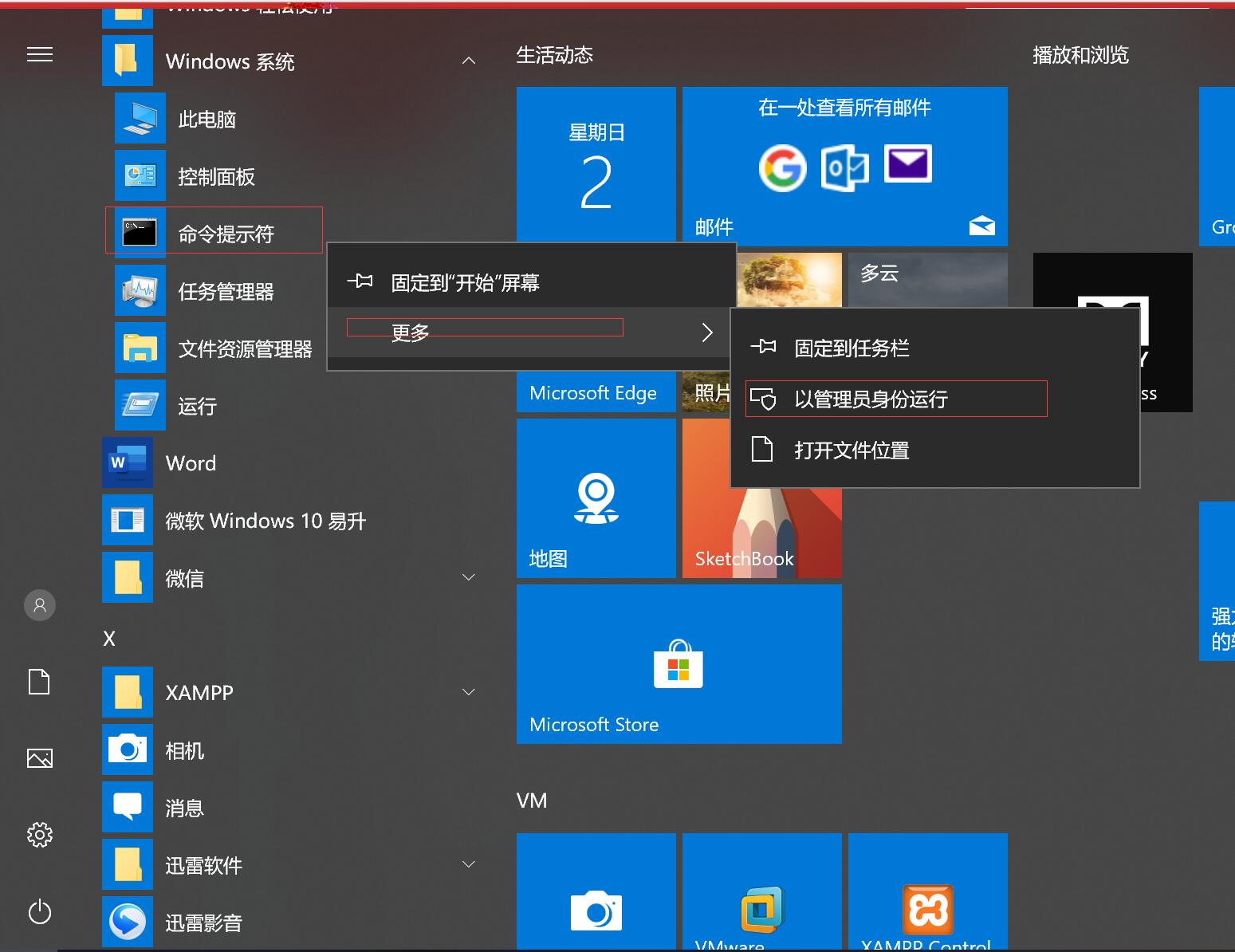 我的电脑重装phpstudy2018,却无法正常的启动它,原因在于我原先就安装了mysql5.7,而PHPstudy2018自带的是mysql5.5,因此我需要删除原有的MySQL5.7。删除方法:win10系统:右击电脑左下角->Windows系统->命令提示符->更多->以管理员身份运行