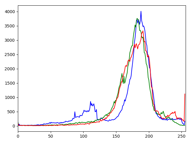 hist = cv.calcHist([image], [i], None, [256], [0, 256])