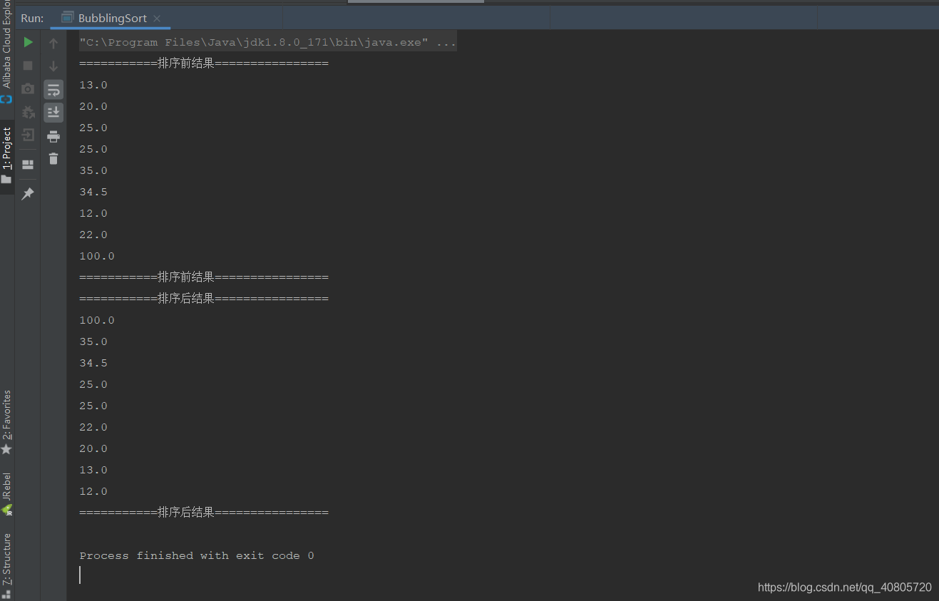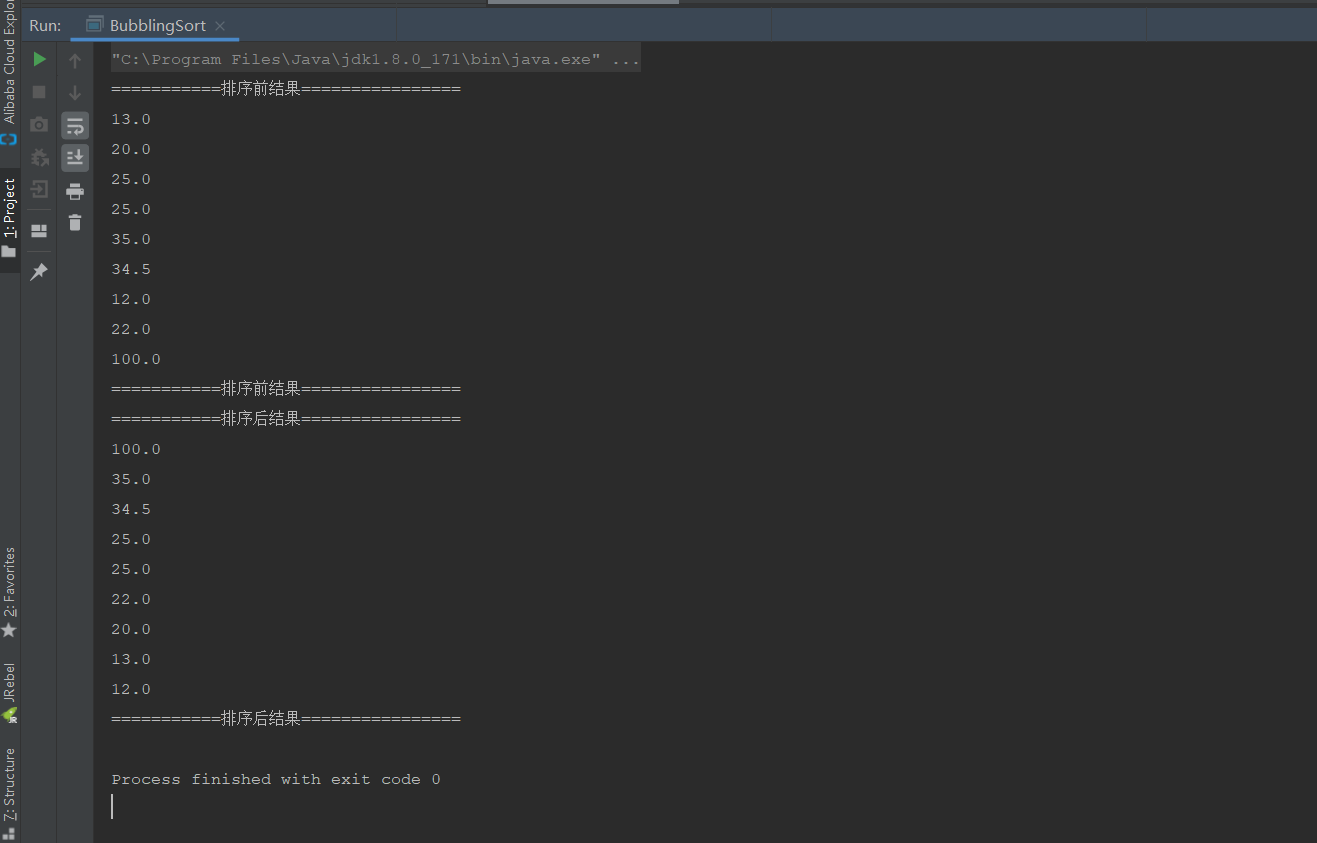 * 将13,20,25,25,35,34.5,12,22,100用冒泡排序从大到小排序输出