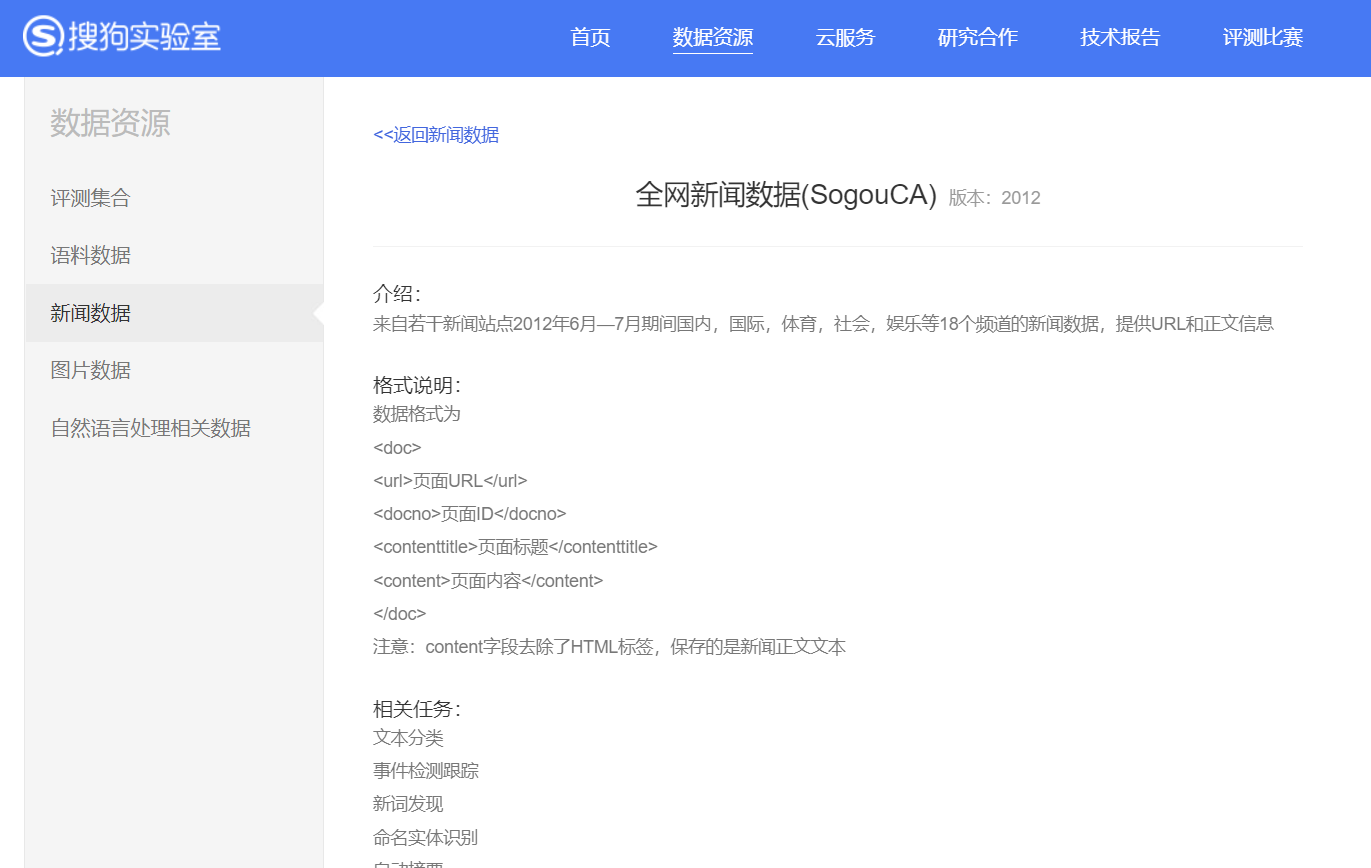 数据源:http://www.sogou.com/labs/resource/ca.php