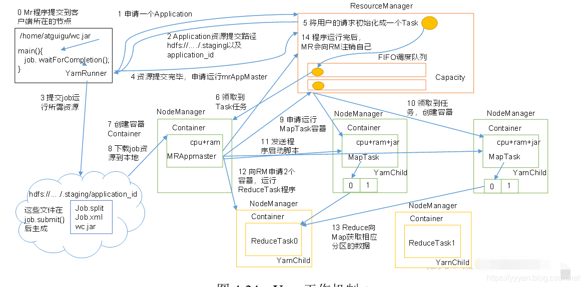 (15)程序运行完毕后,MR会向RM申请注销自己。