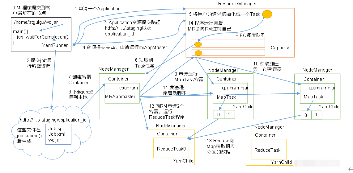 (5)程序资源提交完毕后,申请运行mrAppMaster。