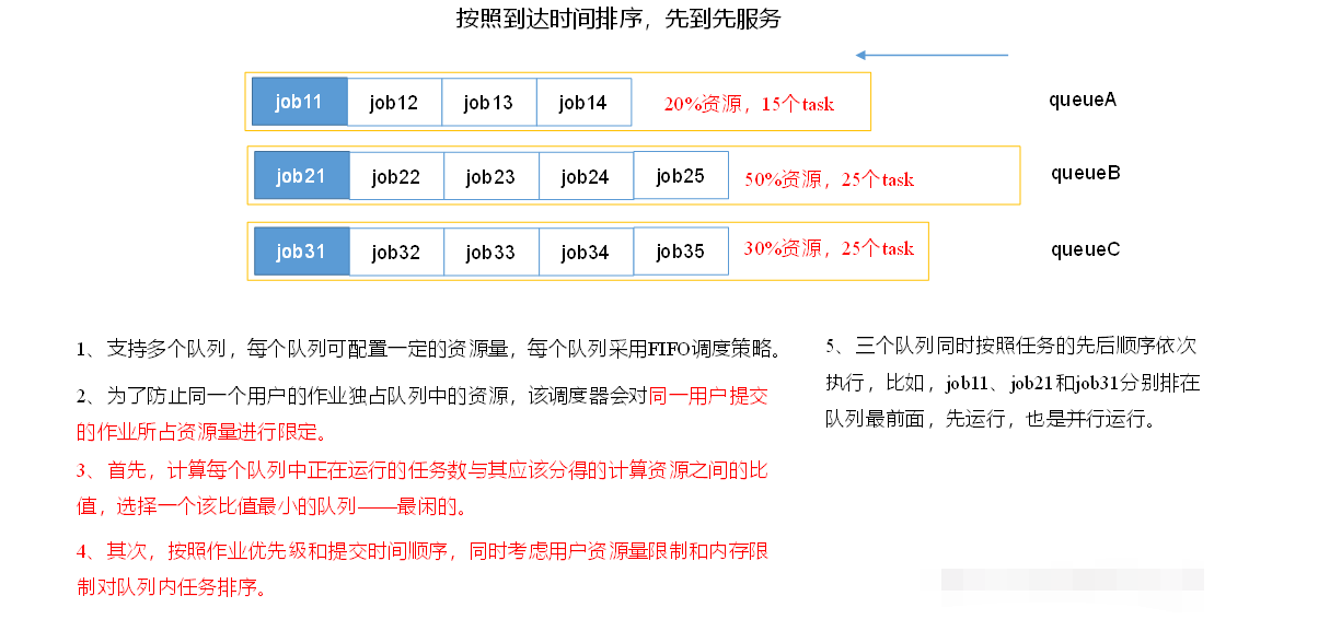目前,Hadoop作业调度器主要有三种:FIFO、Capacity Scheduler和Fair Scheduler。Hadoop2.7.2默认的资源调度器是Capacity Scheduler。