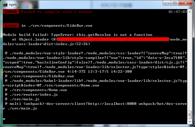 总是报错,Modele build failed: TypeError: this.getResolve is not a function at Object.loader...