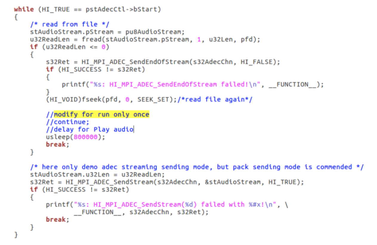 可以从下图看出sample_audio.c包含着不同功能的示例,将不需要的功能全部裁剪掉,只保留读取音频文件播放功能。