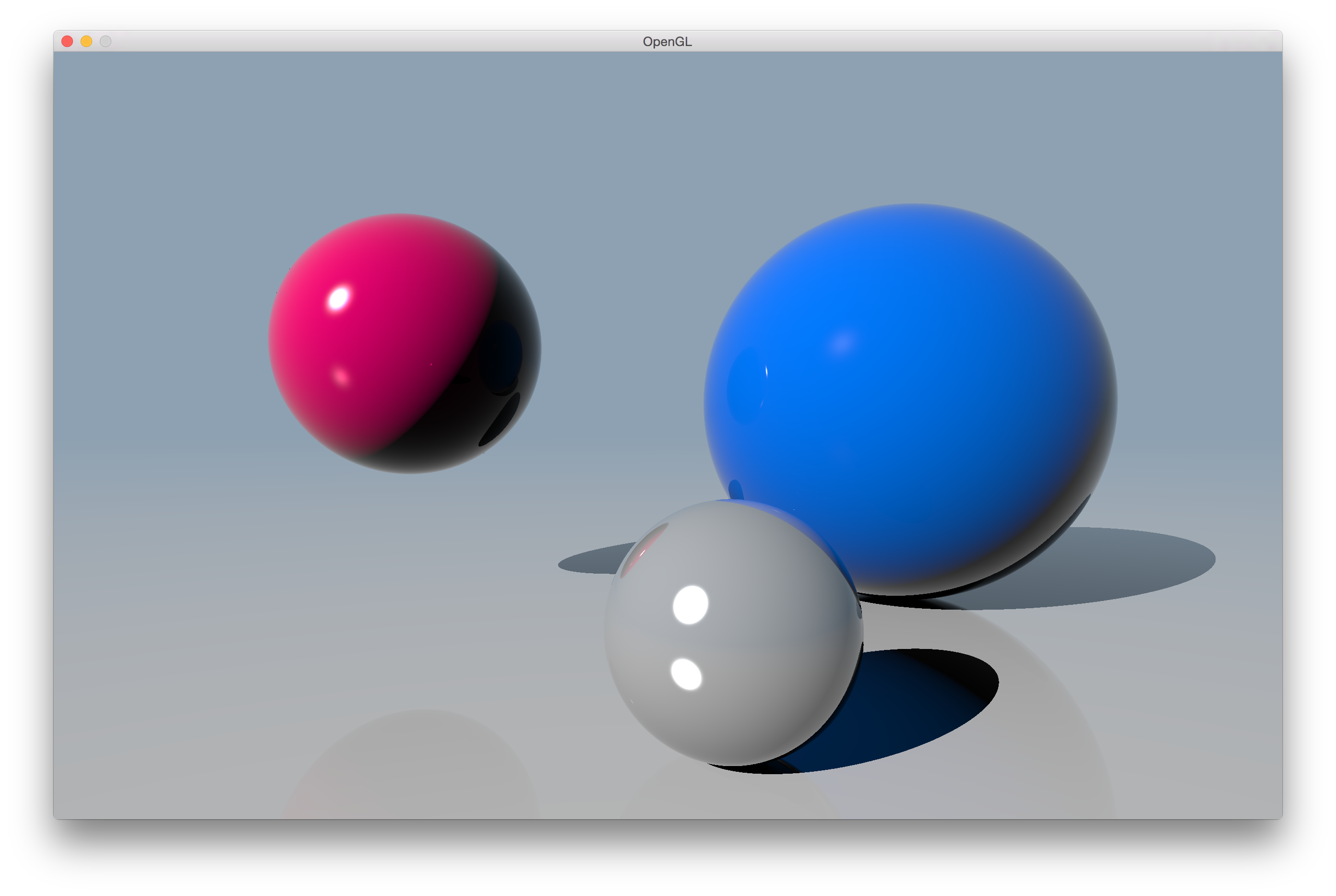 Since my ray tracing approach involves drawing to a 2D quad, I can no longer use the OpenGL Depth and Stencil buffers to control the draw order. Drawing is therefore sensitive to z-indexing, so I first intersect with the plane, then loop through all spheres back-to-front.