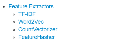 http://spark.apache.org/docs/latest/ml-features.html#feature-transformers