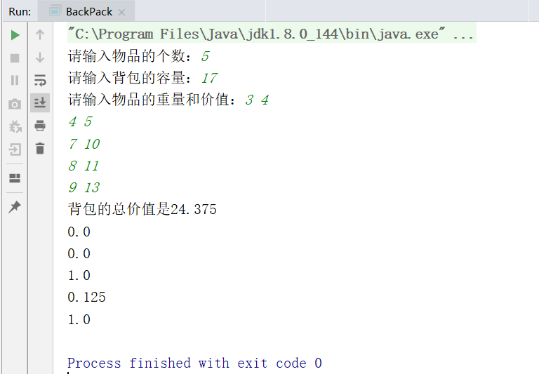 backPack.Knapsack(n, C, vi, wi, x,v2,w2);