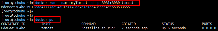 | 运行 | docker run --name myTomcat -d tomcat:latest |