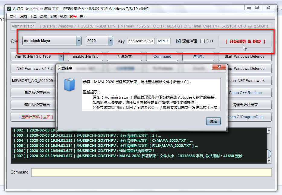 maya 2020没有按照正确方式卸载,导致maya 2020安装失败。楼主也查过网上关于如何解决maya 2020安装失败的一些文章,是说删除几个maya 2020文件和maya 2020软件注册表就可以解决maya 2020安装失败的问题,实际的情况并没有这么简单,导致maya 2020安装失败的原因有很多种。maya 2020安装时产生了几万条注册表,想要彻底卸载maya 2020软件再重新安装maya 2020就有几万条maya 2020注册表要删除,非人力所能为。现在虽然360或者其他一些卸载软件提供了强力卸载maya 2020的工具,可以将maya 2020注册表和一些maya 2020目录的maya 2020残留信息删除,但仍不能确保将maya 2020所有相关dll程序文件、exe可执行文件和注册表全部彻底删除干净。maya 2020安装失败还和C++版本问题有关,因为每个版本的maya 2020都是基于一定版本的C++版本而开发的,如果是这种情况,重装系统C++问题还是可能会存在的。安装成功后,如果缺少必要的dll动态链接库文件,也会导致maya 2020启动和注册失败。上面说了这么多,只是几种maya 2020安装失败最常见的情况。这里使用到一个maya 2020卸载工具,专门用来解决卸载修复maya 2020软件卸载安装失败的问题。maya 2020卸载工具会自动执行一系列问题的排查和修复,极大的节省了排除安装maya 2020失败问题的时间。卸载之后,建议最好用Autodesk官方原始的安装包,压缩包的常常会缺少一些组件也可能导致maya 2020安装失败,安装时还要使用Administrator帐户进行安装。