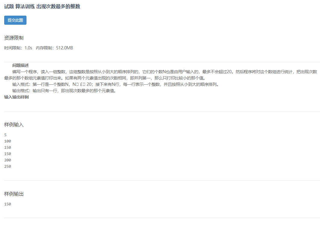 题意:给定一组数据,求出出现次数最多的那个整数,如果有多个相同的,取值较小的。