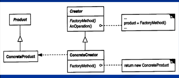 Creator:声明工厂方法,该方法返回一个Product类型的对象。Creator也可以定义一个工厂方法的缺省实现,它返回一个缺省的ConcreteProduct对象。可以通过调用Creator的工厂方法以创建一个Product对象。
