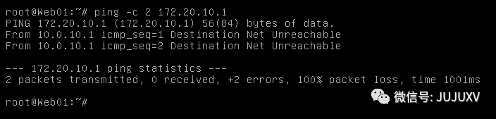 在没有正确设置路由充分发之前,Web01依旧无法ping通172.20.10.1