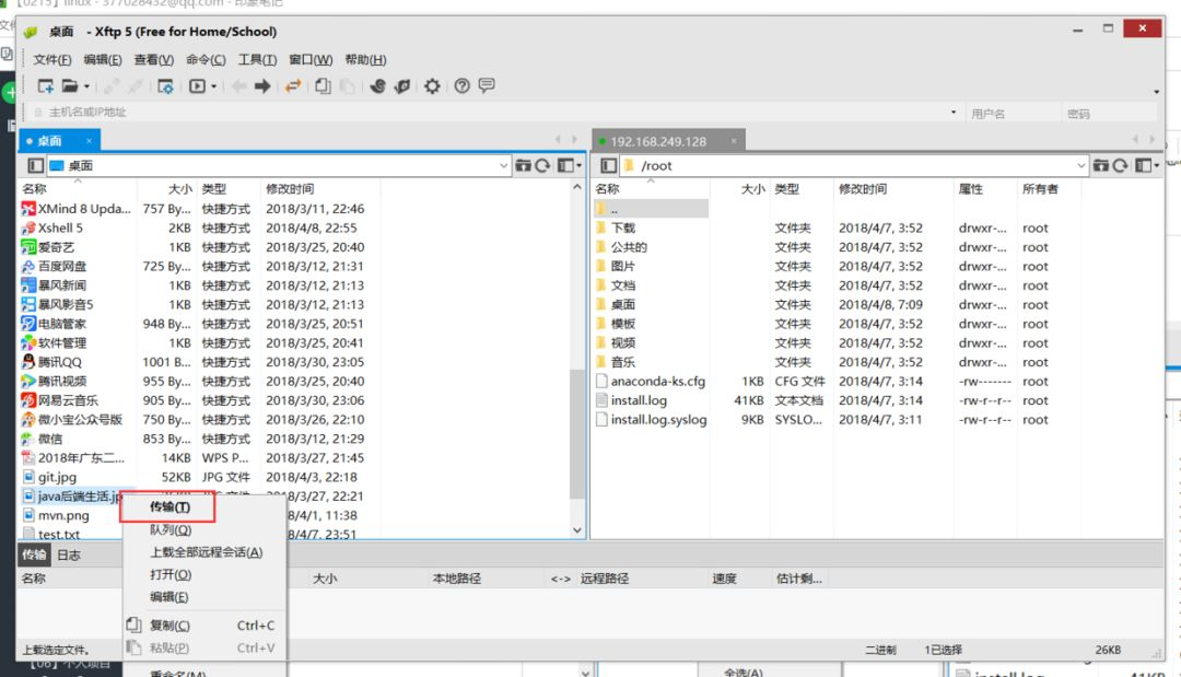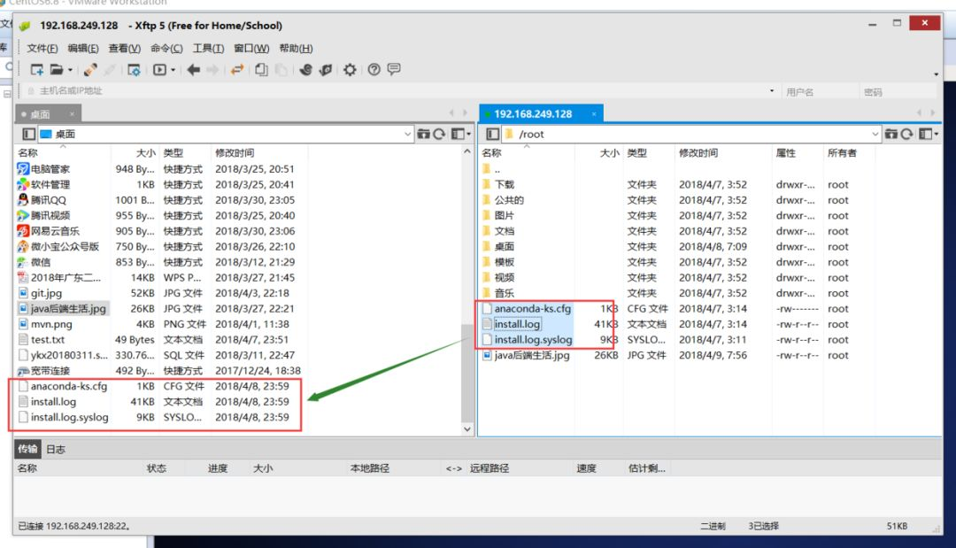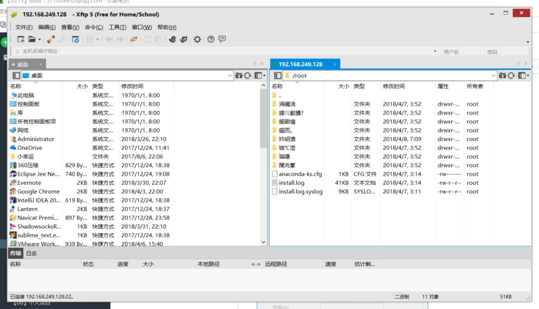 6、连接成功,左边的是windows系统的文件,右边的是linux系统的文件